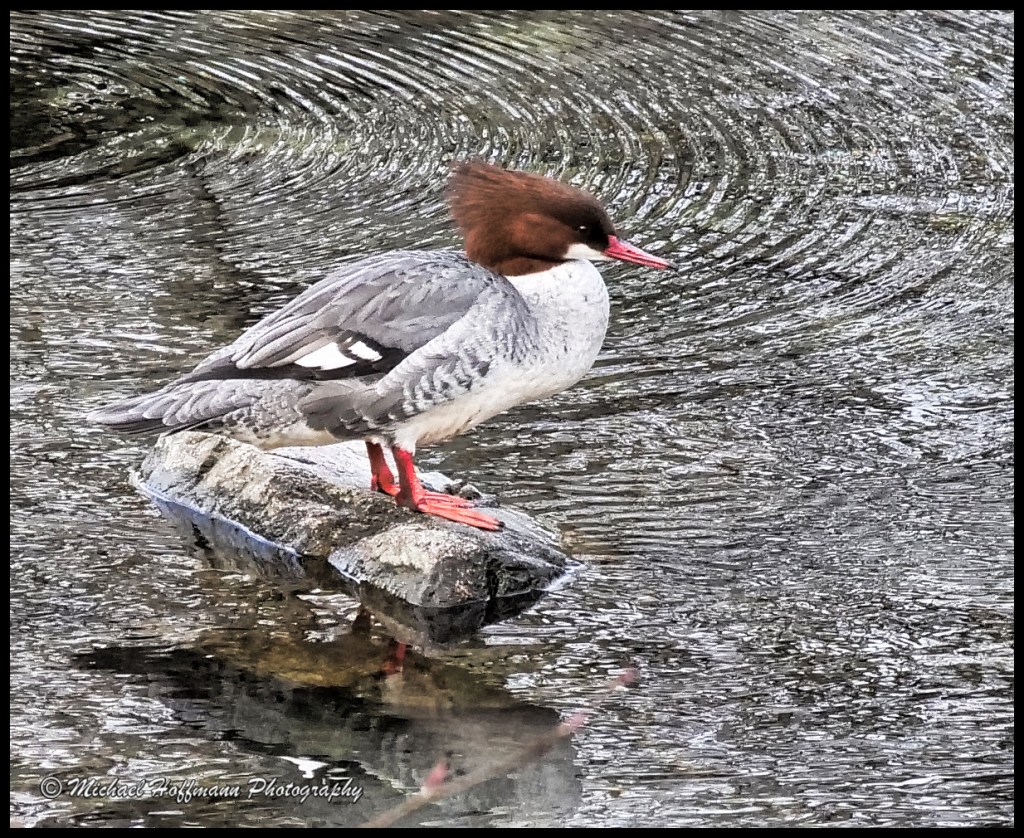 Fancy Duck at Peach Creek Ducks Apparently this is called a female “Common Merganser” What kind of name is that? I’d call it an “Orange-footed Punk Rocker Diver Duck” Any other suggestions? Like Loading...