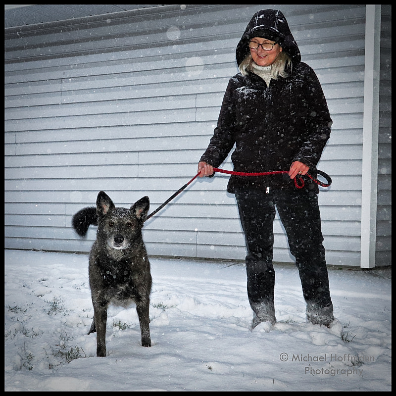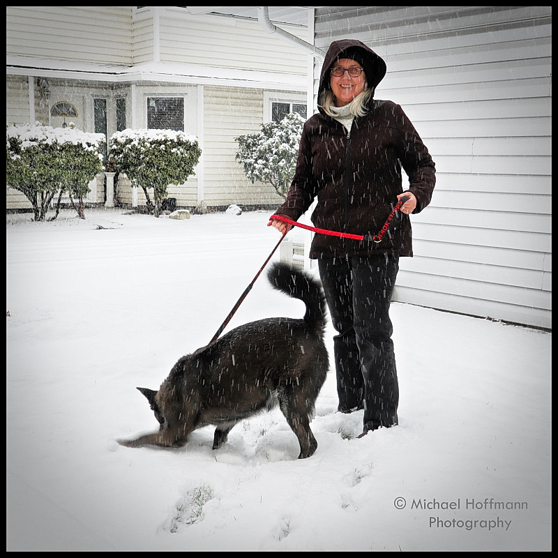 Meet Bear, our recent family addition who keeps us physically active. Here he is with my wife in a snow-storm we are having right now in Vancouver, British Columbia. This is our first snowfall this winter – a little unusual!