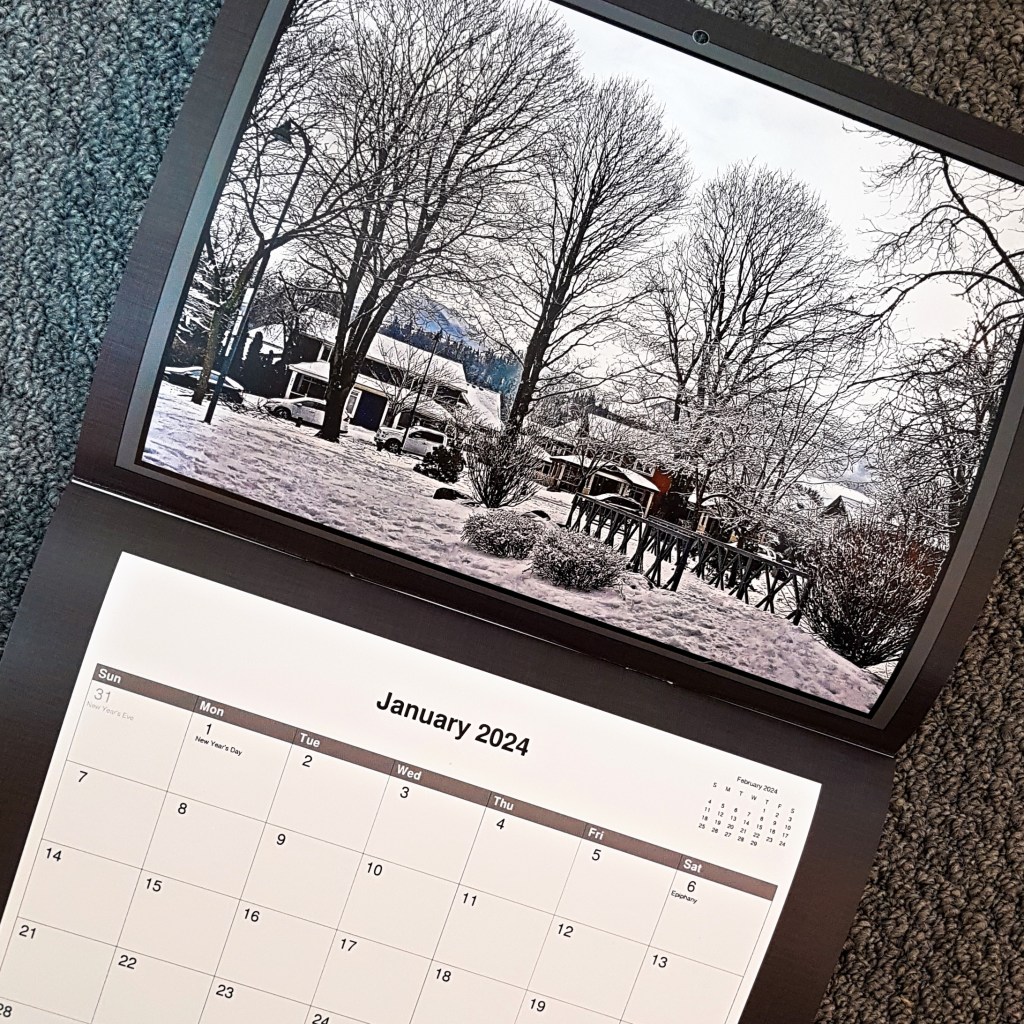 Over the past few years since we have lived in Garrison Crossing (a former Canadian Army Base converted into upgraded housing 20 yrs ago) I have always marvelled at all the wonderful trees. So this year I created a calendar for some of our wonderful neighbours and friends. I’m very pleased with the print quality provide by London Drugs Photo! This is the 3rd calendar project I have enjoyed creating. Others were “Birds+Bees 2023” and “Eagles I Have Seen 2022”