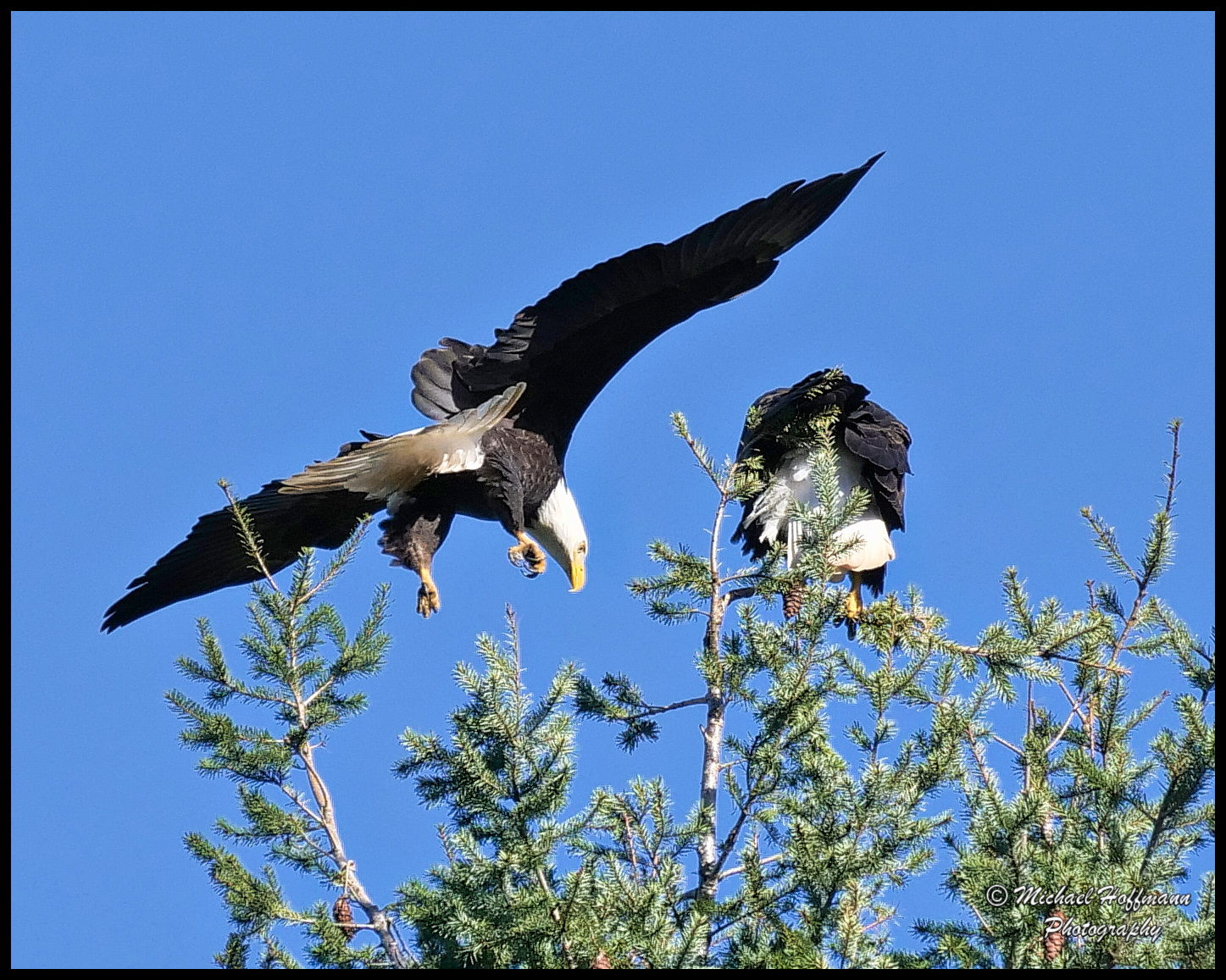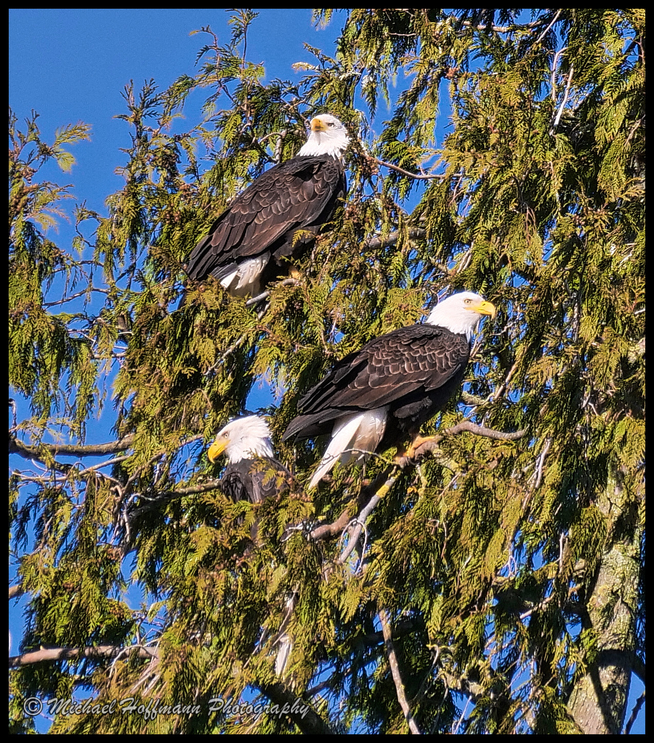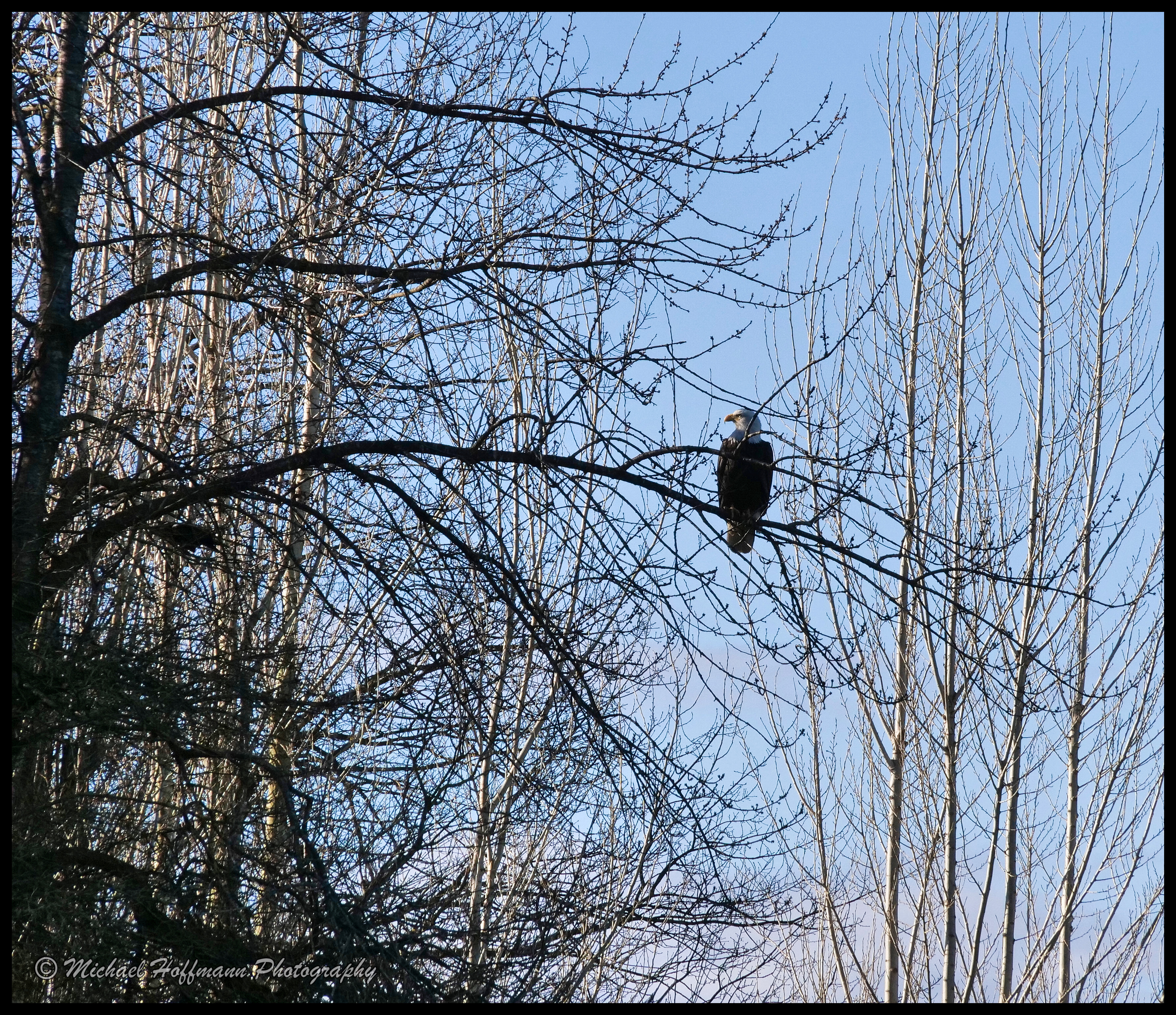 I love this candid shot of the 2 extremely different photographers! I took my shots just past where these folks were. I used a 300mm lens and then cropping 10% of original image. This fine eagle on the spent some time trying to remove a large dead salmon trapped in the rocks, without success. Vedder River, Chilliwack, BC is famous for Salmon fishing enthusiasts.