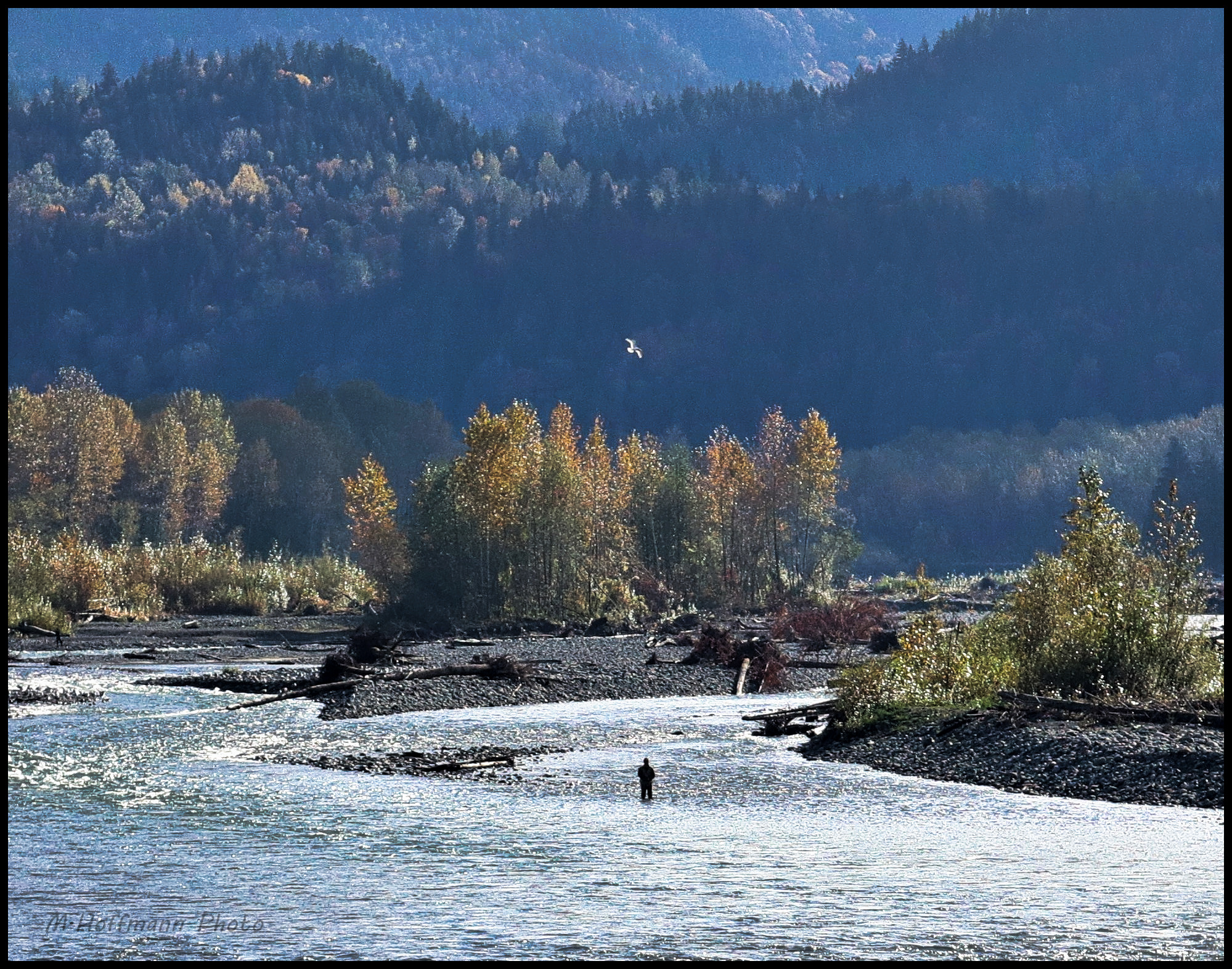 Lone Angler on the Vedder River, Chillwack, BC is greeted by some foul guests